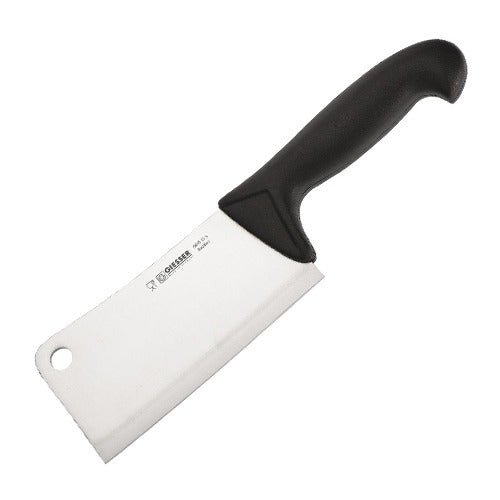 The Giesser Cleaver With POM Handle boasts a blade crafted from high-grade chrome molybdenum steel, which is hardened in vacuum process to 56 - 57 Rockwell hardness grade. Its blade surface is highly polished for highest possible rust resistance and durability of the cutting edge. Each knife is honed by hand for perfect sharpness. Its handle is suitable for contact with food, and is made of a standard plastic that is especially non-slip and pleasantly easy-to-grip material (TPE). The knives are dishwasher proof. However, manual cleaning is recommend to protect the cutting edge.
